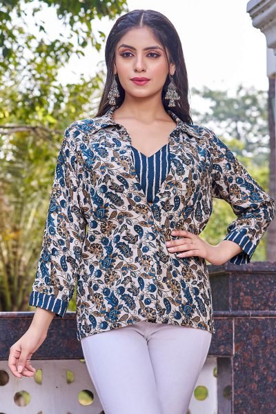 Size ChartRAYON FOIL PRINT JACKET WITH RAYON CROP TOP CO-ORD SET.