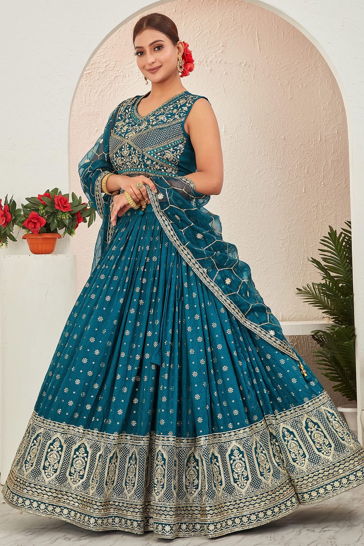 Size ChartLEHENGA FABRIC: JARI AND SEQUINS EMBROIDERY WORKED DOLA SILK. BLOUSE FABRIC: HANDWORKED AND EMBROIDERY WORKED DOLA SILK. DUPATTA FABRIC: EMBROIDERY WORKED ORGANZA.