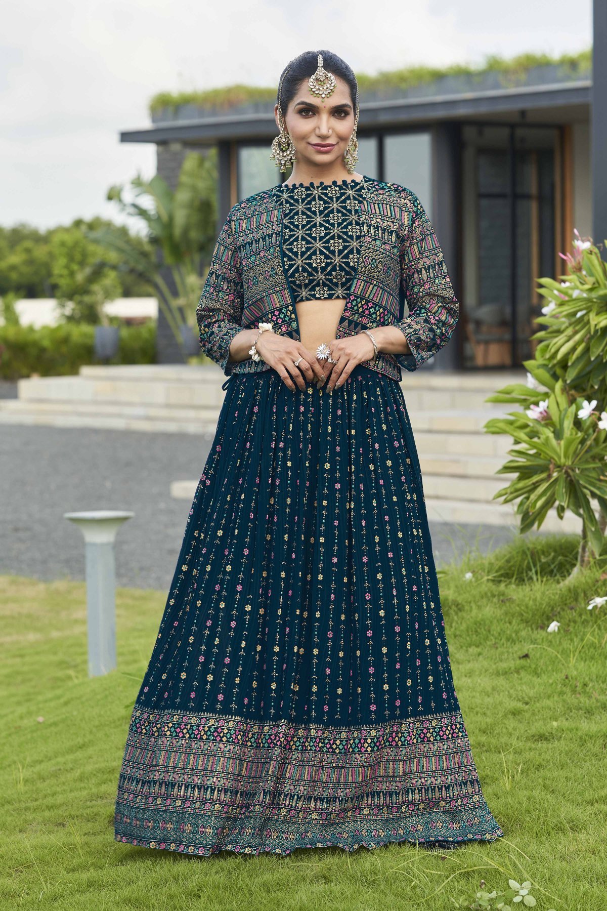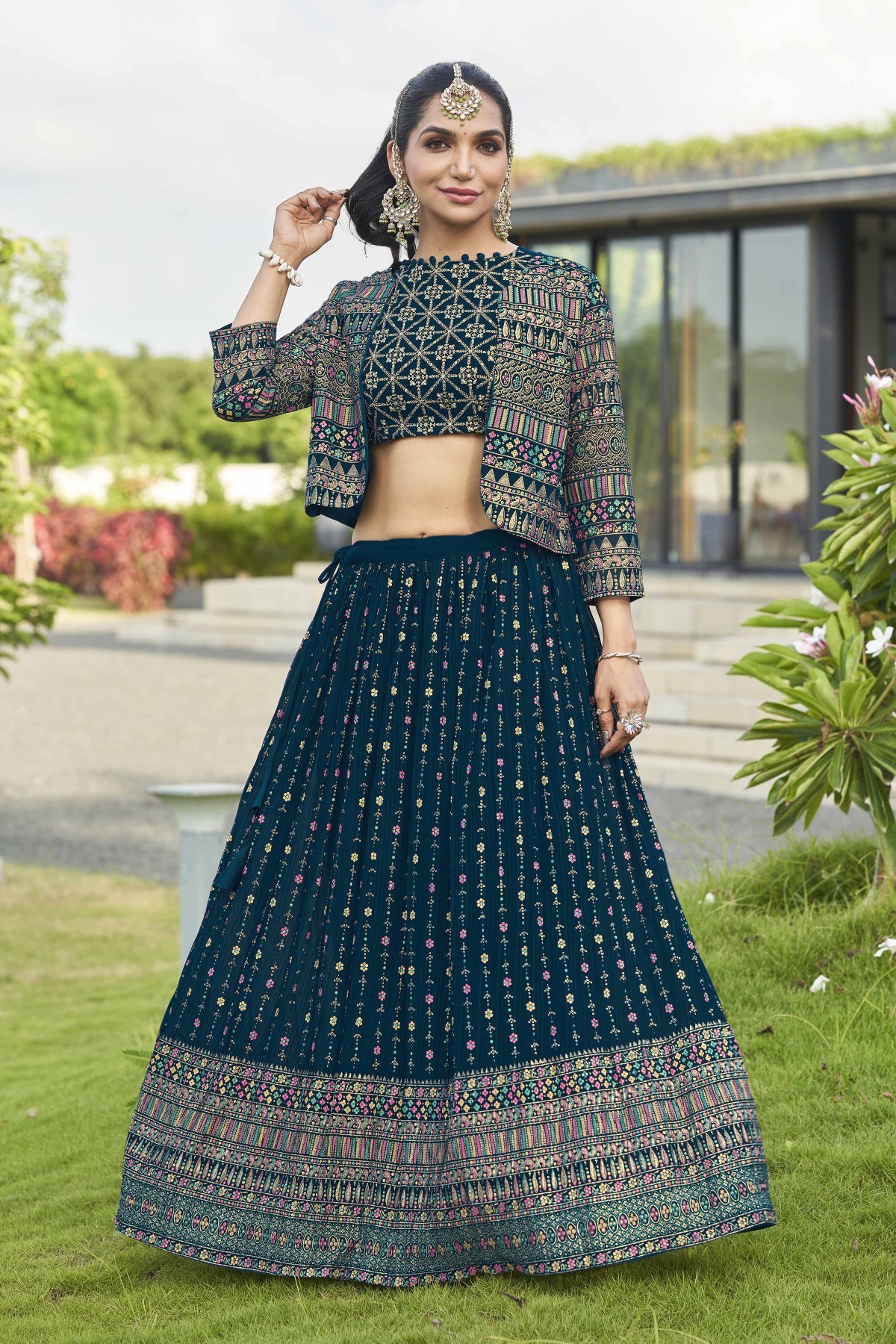Petrol Blue Lehenga Choli With Jacket